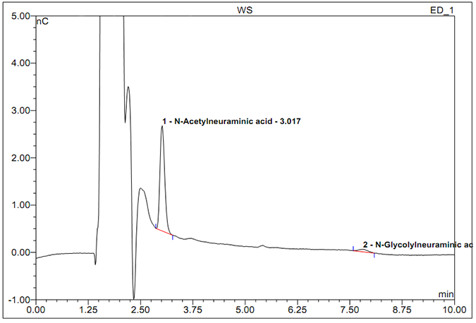A powerful technique to help you identify and quantify sialic acid species in your biopharmaceutical product. Determination of quantity/ composition of sialic acid in glycoproteins which can play an important role in protein activity and immunogenesity using HPAEC-PAD (High Performance Anion Exchange Chromatography-Pulsed Amperometry Detection) method after weak acid hydrolysis of glycoproteins.